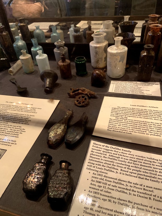 Unlike some museums, this museum also tells the story of the slaves who were part of the household. Though slaves were forbidden from working in the pharmacy, the Dufilho’s did have domestic servants. In the back of the museum is a lovely courtyard, which has the layout of where the slave quarters were located. The Museum is continuing their archival research about the slaves who were at this location. I can’t wait to see where this research takes the narrative.